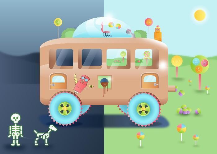 “O Candy Robo Car possui janelas traseiras com visão de raio-x e o carro é alimentado por chocolate. O carro é conduzido de dentro de um casulo no topo, cercado por um jardim”